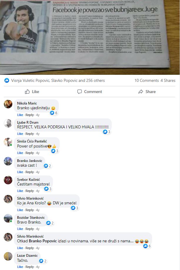 Neki od vas me se verovatno sećaju iz perioda pre Berklija, sa Evrovizije 2004. godine u Istanbulu, kao bubnjara u pesmi Lane moje. Vrlo je moguće da smo se sreli i na nekom od velikih koncerata koje smo u tom periodu održavalili u najvećim halama i na stadionima širom bivše Jugoslavije.